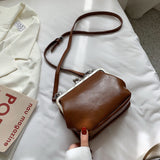 棕色彷皮復古吻扣前後隔層兩面用設計斜背包