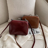 紫紅色彷皮復古吻扣前後隔層兩面用設計斜背包