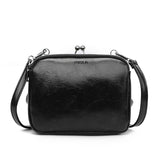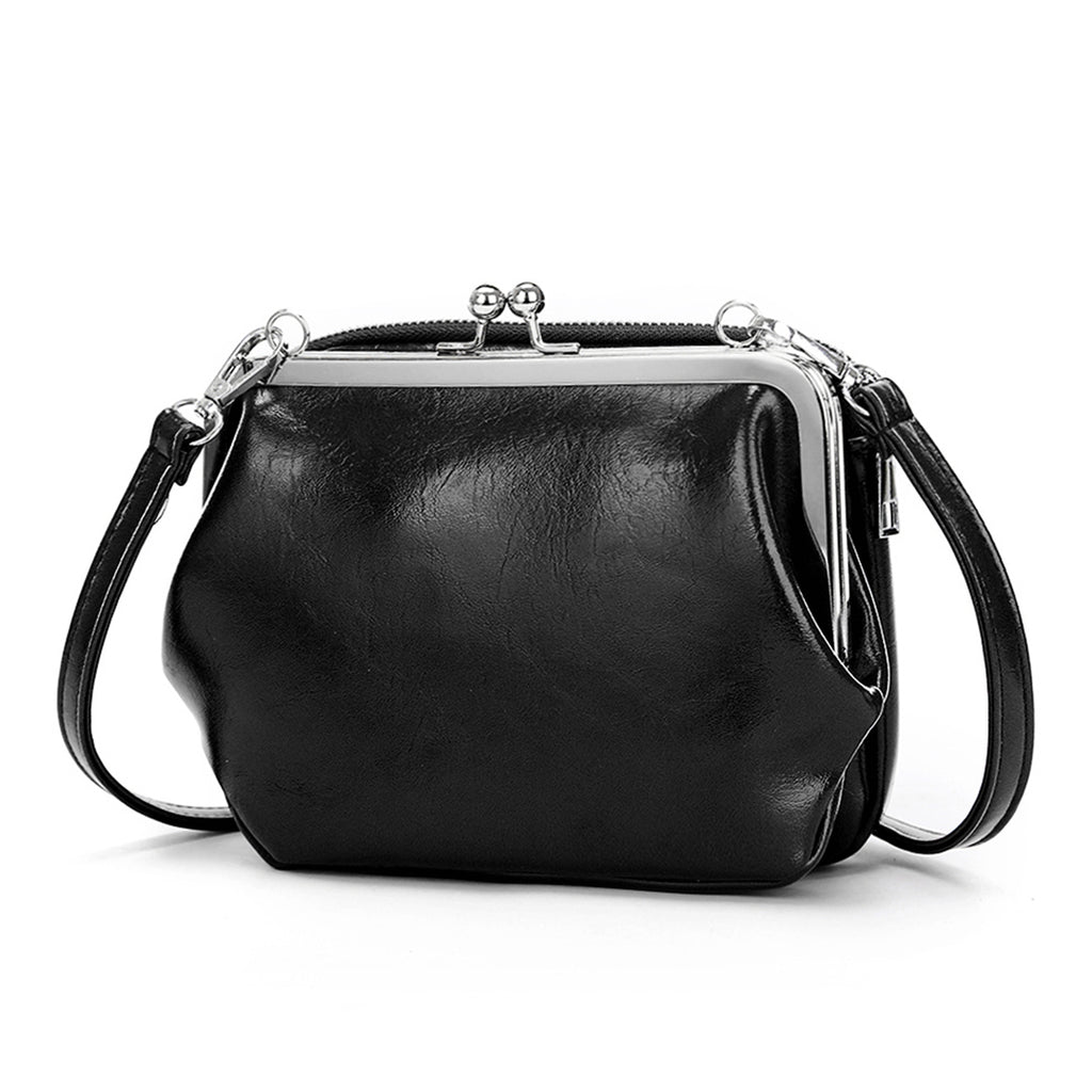 黑色彷皮復古吻扣前後隔層兩面用設計斜背包