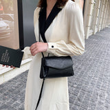 黑色彷皮風琴式隔層信封形翻蓋斜背包