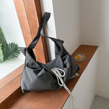灰色尼龍繩索細節翻蓋設計休閒大容量餃子包