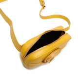 黃色彷皮圓形拉鍊小包吊飾口袋設計腰包款式斜背包