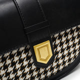 黑色彷皮金屬磁扣翻蓋設計紋理布料拼面斜背包