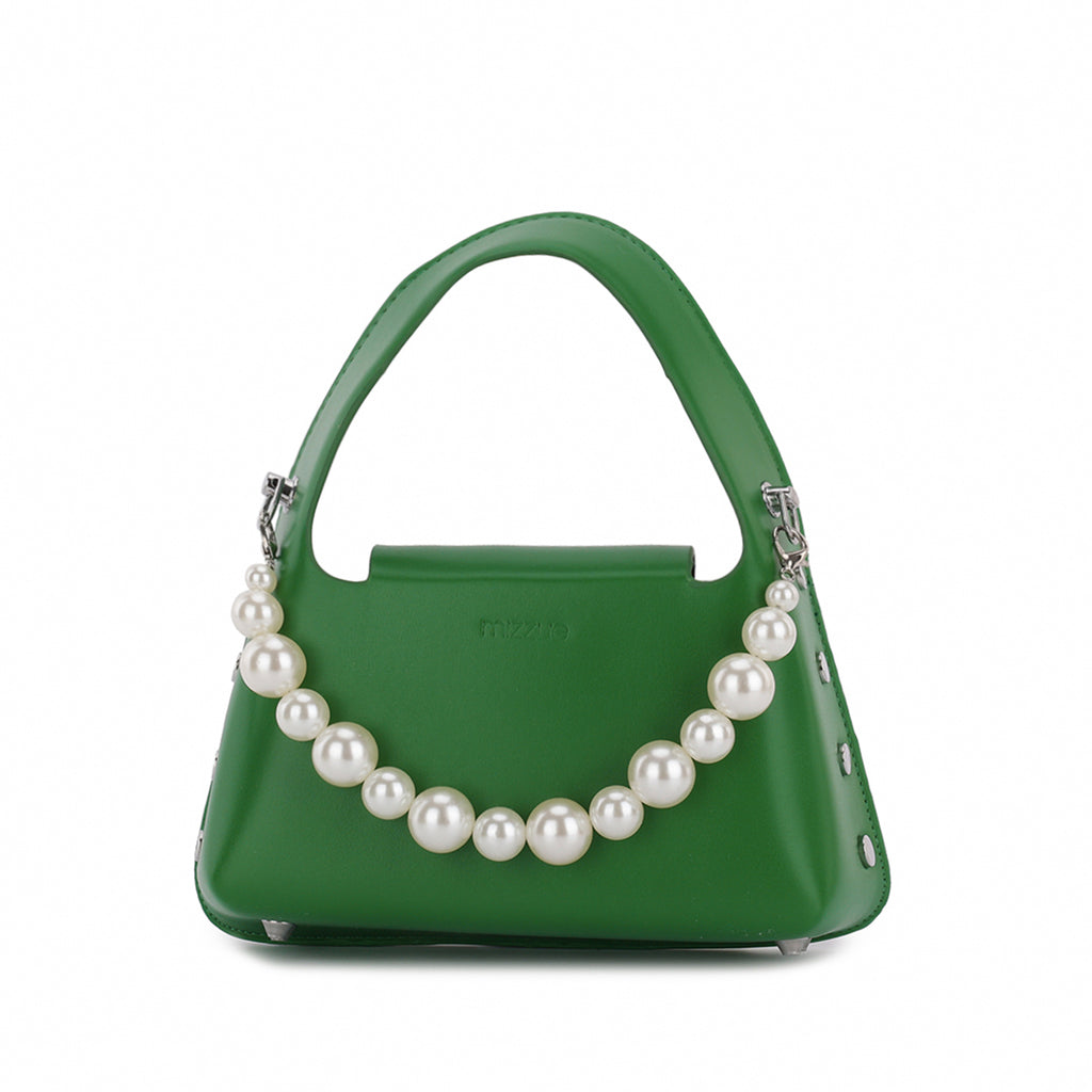 綠色彷皮優雅人造珍珠掛飾設計圓釘細節闊手柄兩用斜背包