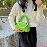 果綠色彷皮優雅人造珍珠掛飾設計圓釘細節闊手柄兩用斜背包