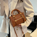 淺棕色彷皮皺褶效果前拉鍊設計帶子綴飾手提斜背包